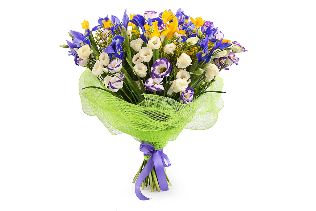 - Молодым специалистам дарят букеты с бутонами или маленькими соцветиями в белой, голубой, розовой и сиреневой цветовой гамме. Причем женщинам подбирают варианты в виде шара, в то время как мужчинам – вертикальные, акцентирующие внимание на силе и уверенности в себе.