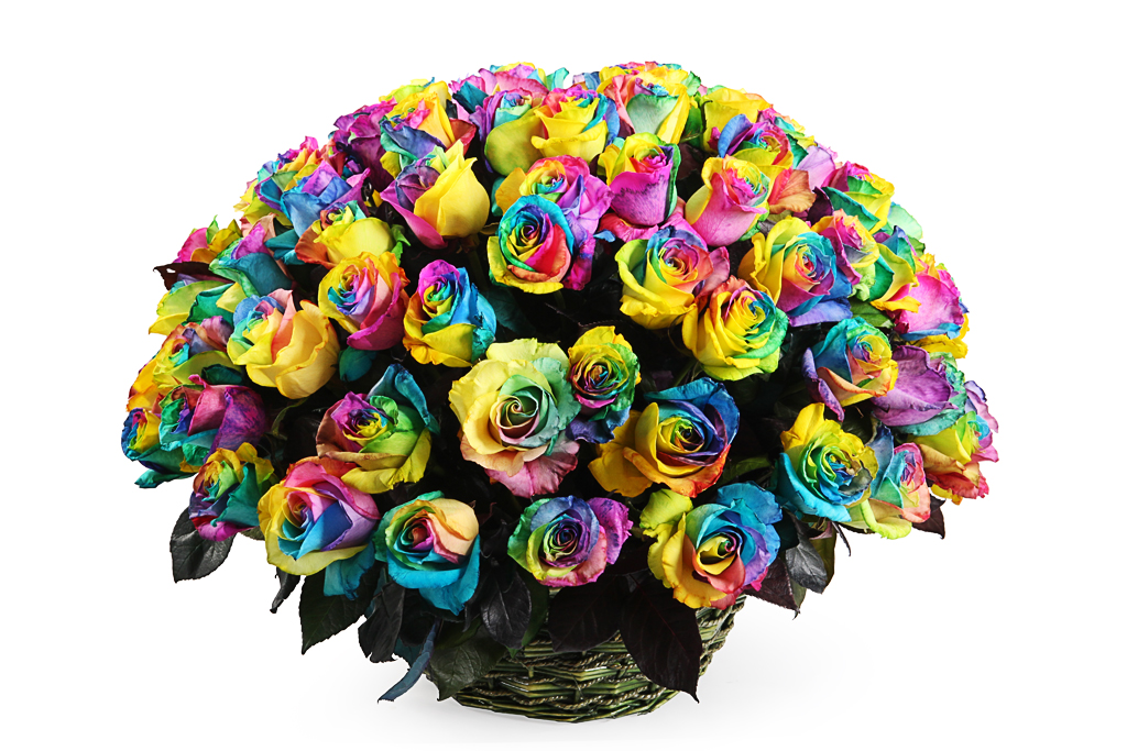 Они настолько фантазийны, похожи на просто раскрашенное фото классических растений, что считаются самыми прекрасными цветами, среди любителей креатива. Но при всей своей необычности бутоны традиционной формы, окрашенные во все цвета радуги, получены без участия генной модификации. Достичь такого эффекта помогла изобретение голландских цветоводов. Суть сложной технологии состоит в том, что через стебель обычной белой розы пропускается окрашенная вода. Rainbow Rose – лучший способ борьбы с плохим настроением, символ позитива, улыбок и радости.