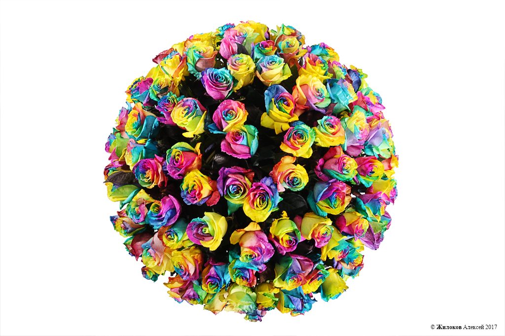 Состав: Роза радужная (Эквадор) - 101Корзина средняя - 1 |