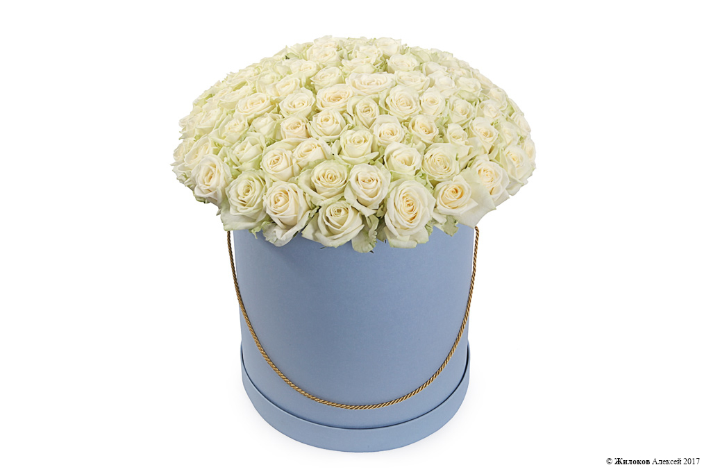 Состав: Роза Аваланш - 101Коробка круглая 31х34 (голубая) - 1 |