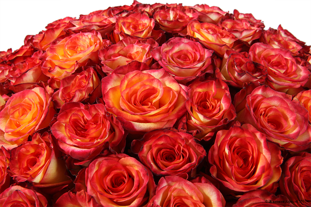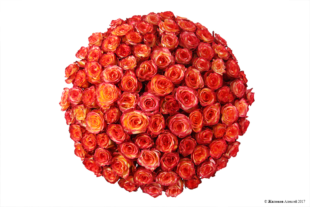 Композиция состоит из 101 розы Хай Мэджик в шляпной коробке, плавно переходящей из жёлтого в алый. Душистая и яркая, корзина бросается в глаза и завораживает. Говорят, что можно смотреть бесконечно на несколько вещей-на огонь, на воду и на данную композицию. Она поражает своей пышной формой. Порадуйте своих близких этой композицией, полном свежести, ярких красок и позитивных эмоций!