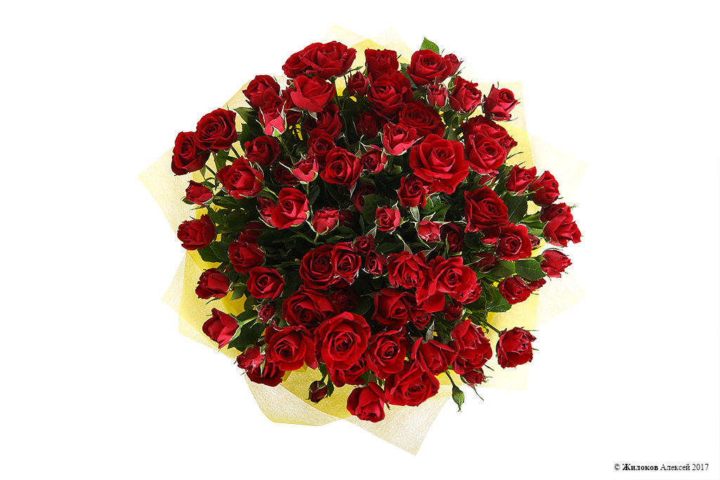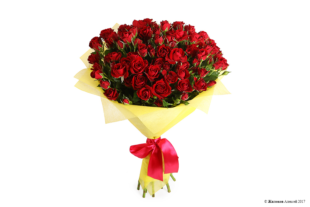 Романтичный и яркий букет из кустовых красных роз как снова и снова произнесенное слово "люблю", покроет ароматными поцелуями.