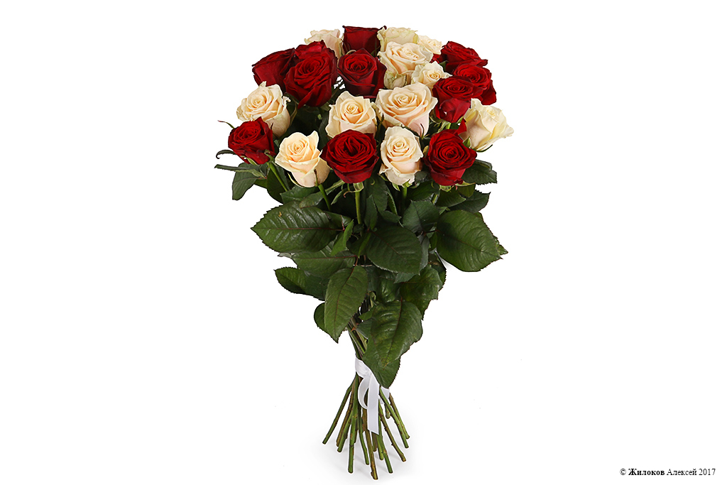Состав: Роза микс (Россия) - 21Атласная лента - 1 |