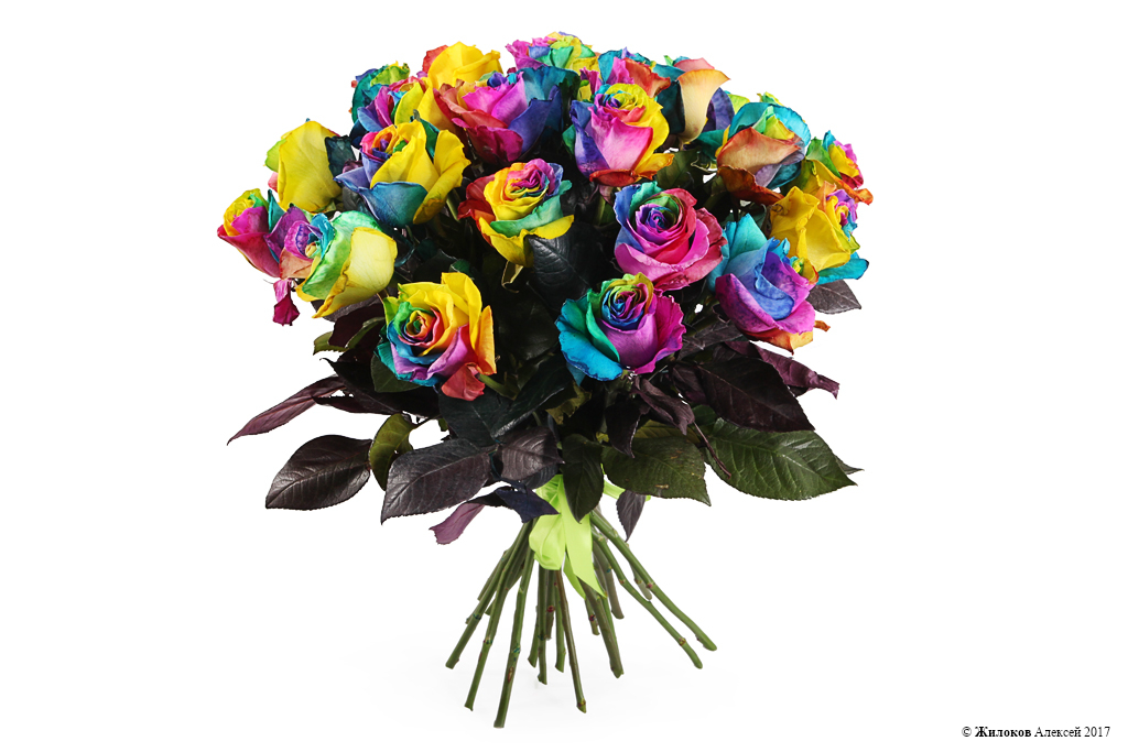 Эксклюзивный букет из 25 Радужных роз впечатляет своей оригинальностью и потрясающим колоритом. Это великолепный цветок, который сочетает в себе широкую палитру сказочных оттенков, тем самым символизируя весь спектр и глубину испытываемых Вами чувств.