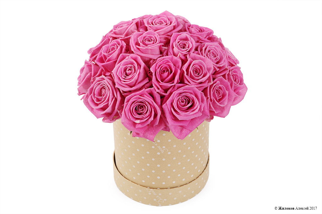 25 розовых роз Аква - это бесконечно романтический и трогательный подарок для хрупкой и нежной девушки. Изящные цветы гармонично дополняет шляпная коробка, которая также подчеркивает всю красоту роз. Такой подарок сведет с ума и останется в памяти получателя надолго!