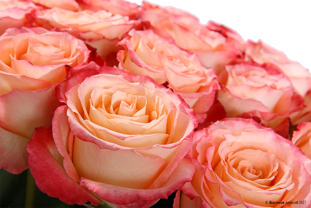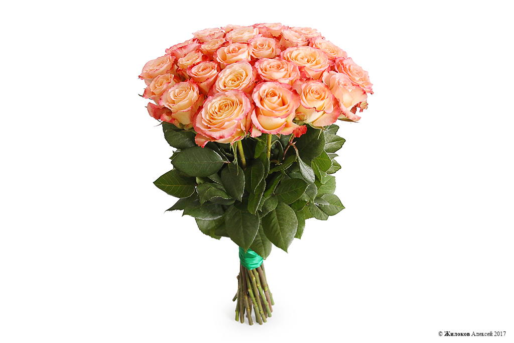 Изысканные и утонченные бутоны эквадорской розы Дуэт Классик в розовато-персиковых цветах, с более темным, контрастным краем лепестков подарят нежность и тепло адресату. Они способны передать за Вас самые трепетные, возвышенные и искренние чувства.