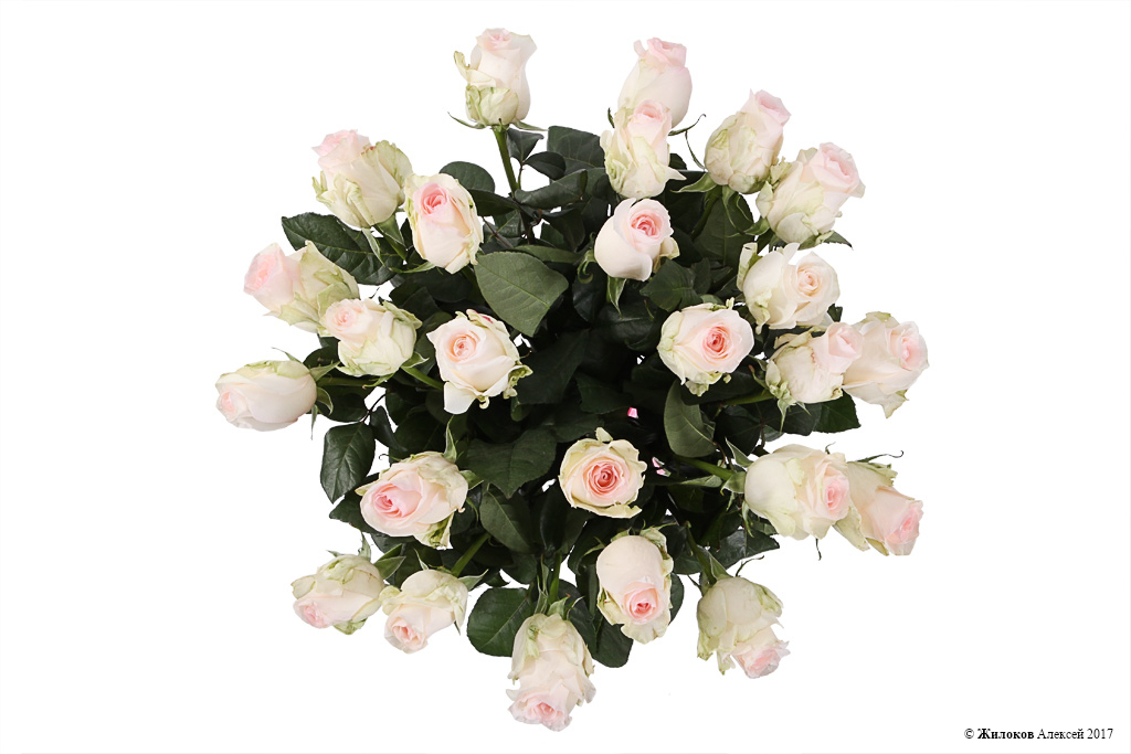 Небольшой, но эффектный букет из 25 эквадорских роз Сеньорита с огромными бутонами цветков и оригинальным сочетанием цвета: основной цвет - айвори, середина бутона - нежно-розовая. Эти розы соединили в себе роскошь и броскую красоту с невероятной нежностью и непорочностью.