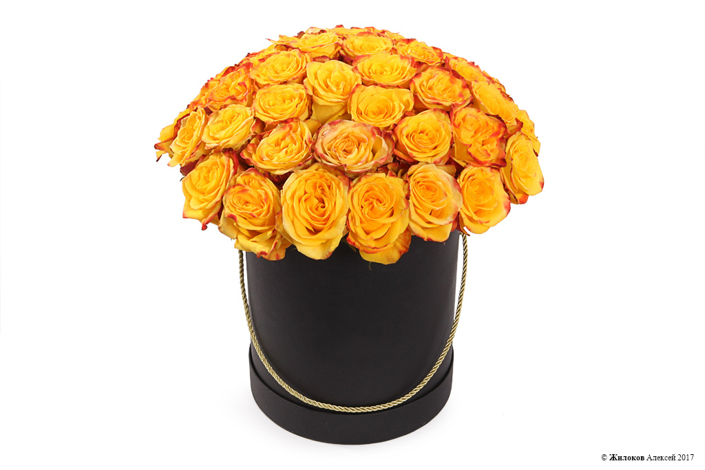 Невероятно яркий букет из 51 эквадорской розы Хай Еллоу с бутонами классической чашеобразной формы станет незабываемым подарком для любого адресата. Роскошный желтый цвет бутонов с тонкой красной окантовкой передаст весь жар Ваших горячих чувств, а черная шляпная коробка подчеркнет изысканный стиль и вкус дарителя.