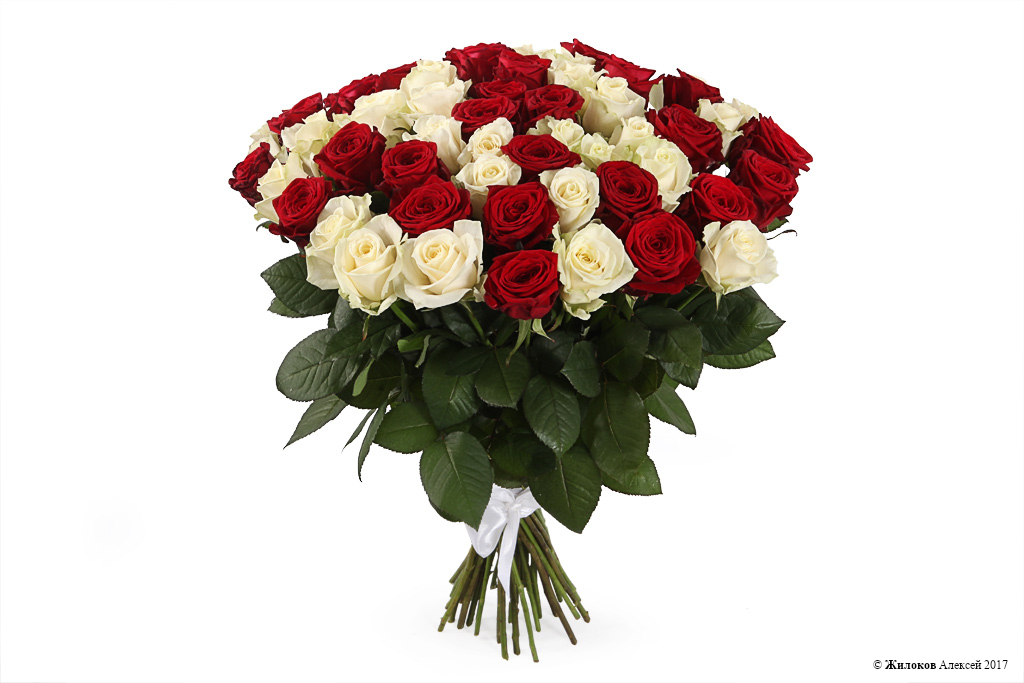 Эффектный, яркий, пышущий страстью и жизненной энергией букет из контрастных белых и красных роз - это отличный подарок к любому событию в жизни. А Ваша избранница будет счастлива получить его в качестве признания в самых горячих и нежных чувствах, которые помогут выразить прекрасные розы.