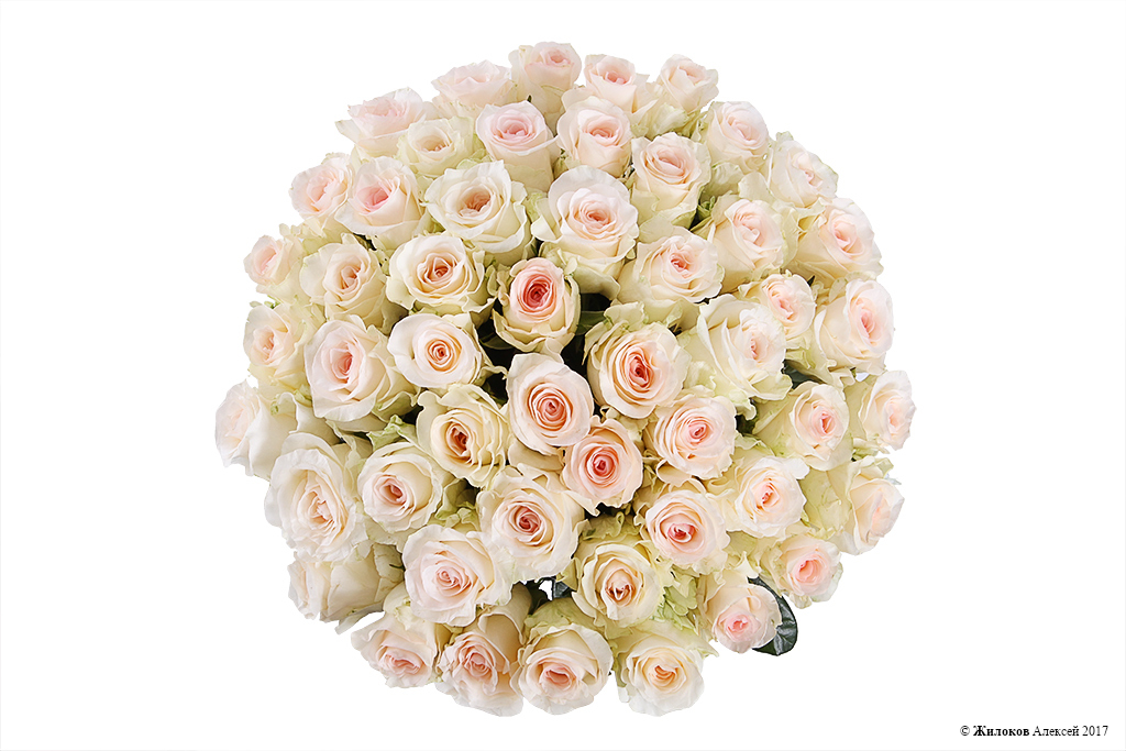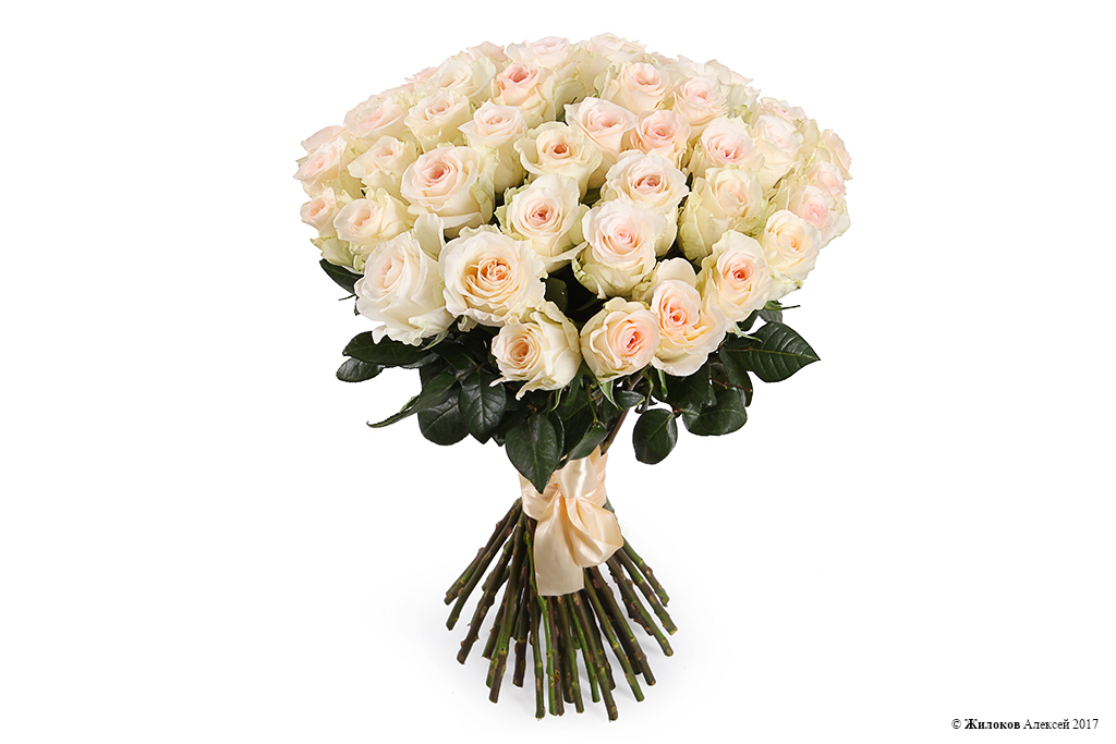 Элегантный и нежный букет из 51 кенийской розы Сеньорита говорит о изысканном вкусе и трепетных чувствах. Большие бутоны цветов имеют оригинальное сочетание цветов: основной цвет - айвори, середина бутона - нежно-розовая. Все это придает букету невероятную изящность и красоту.