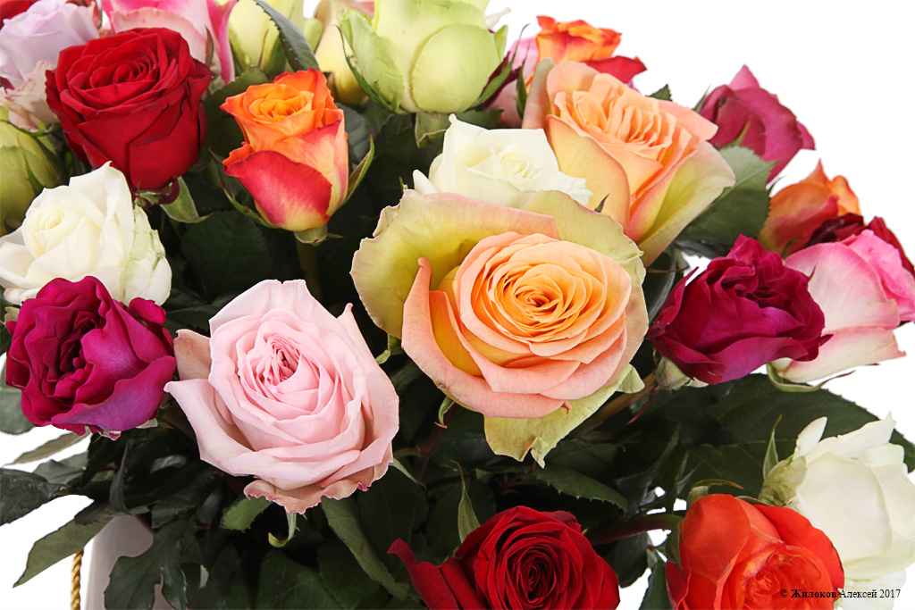 Презент, способный выразить адресату весь спектр испытываемых Вами чувств, которые переполняют Ваше сердце, - это удивительный, яркий и праздничный букет из 35 разноцветный кенийских роз! Такой букет, главной особенностью которого является невероятная цветовая палитра, станет чудесным подарком по поводу и без! А шляпная коробка добавляет цветочной композиции стиля и элегантности, изящно подчеркивая красоту цветов.