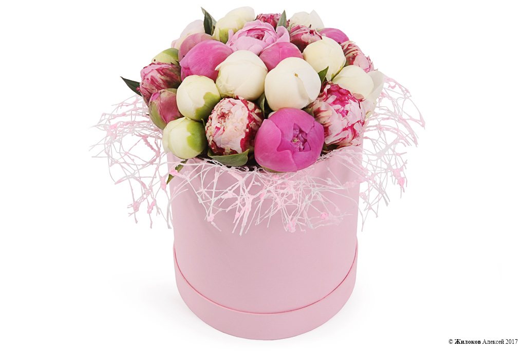 Состав: Пион - 25Коробка круглая 18х19 (розовая) - 1 |