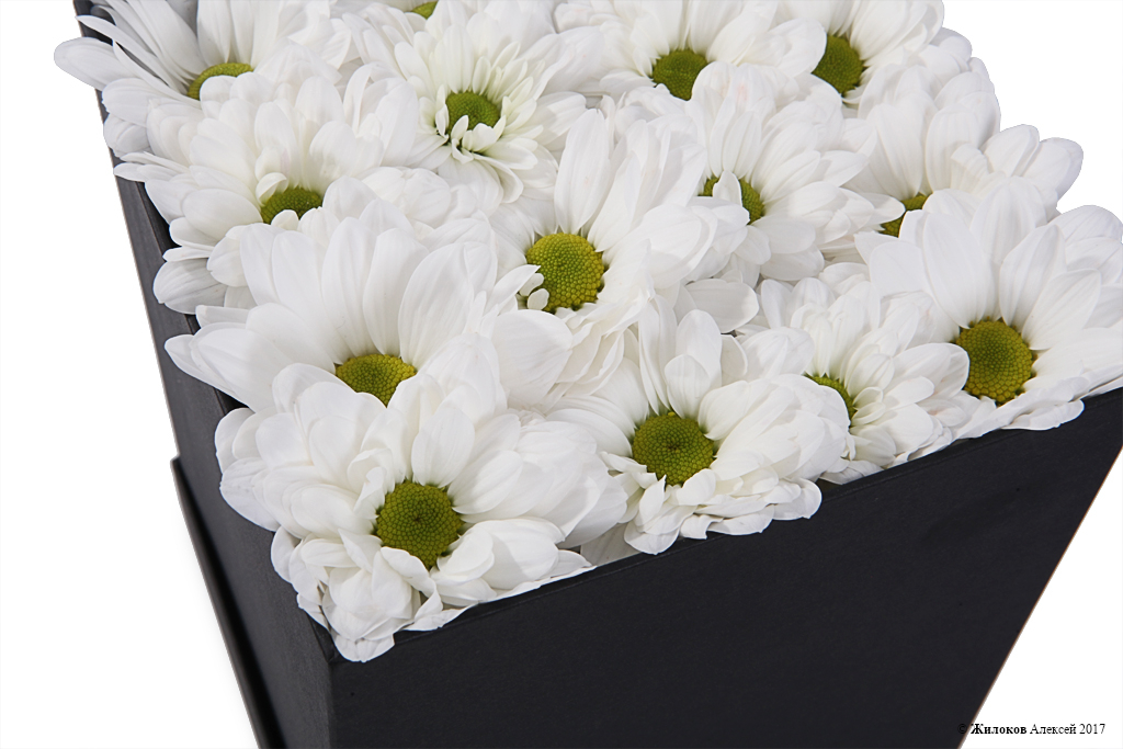 Цветочная композиция из кустовых хризантем станет изысканным поздравлением или необычным комплиментом для любимого человека. Оригинальный и запоминающийся подарок, дополнительную элегантность которому придает контрастная черная коробка.