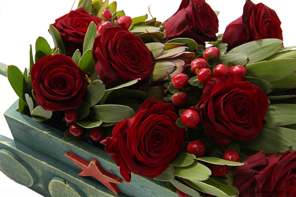 Состав: Роза Ред Наоми - 11Леукадендрон - 1 Гиперикум - 3 Кашпо "Танк" - 1 |