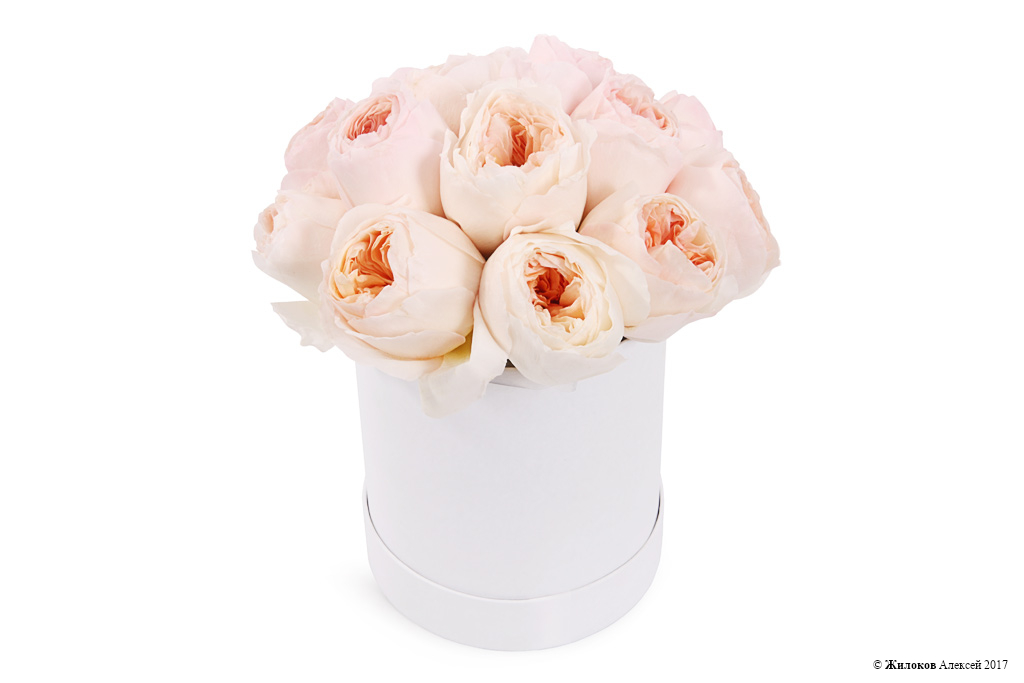 Состав: Роза пионовидная - 15Коробка круглая 14х15 (белая) - 1 |