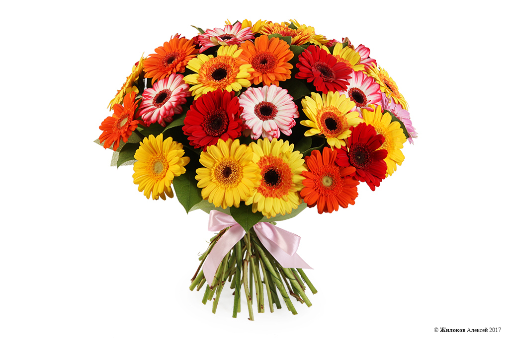 Состав: Гербера мини - 31Салал - 1 Атласная лента - 1 |