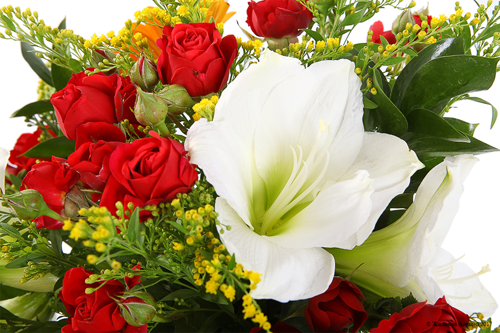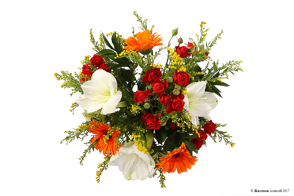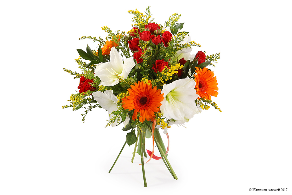 Лаконичный, но в тоже время изящный букет, который, несмотря на всю свою простоту, выглядит празднично, роскошно и величественно. Такой букет станет настоящим украшением любого торжества!