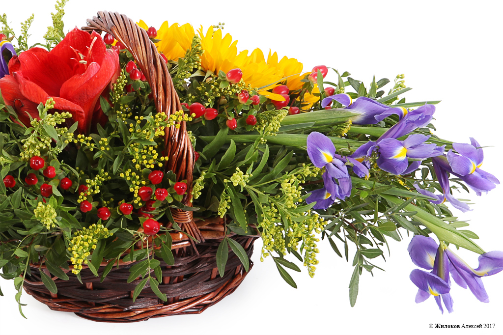 Состав: Гиппеаструм - 6Рускус Акулеатус - 1 Атласная лента - 1 |