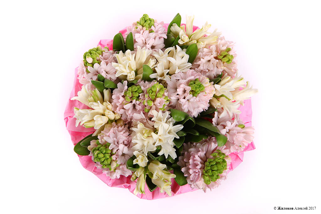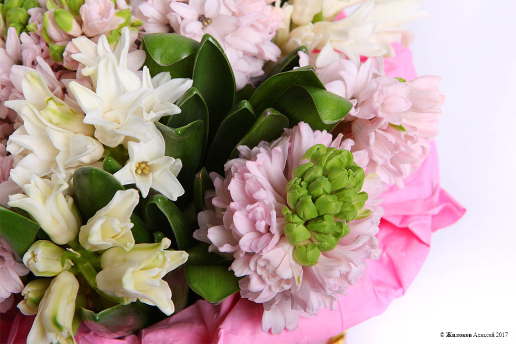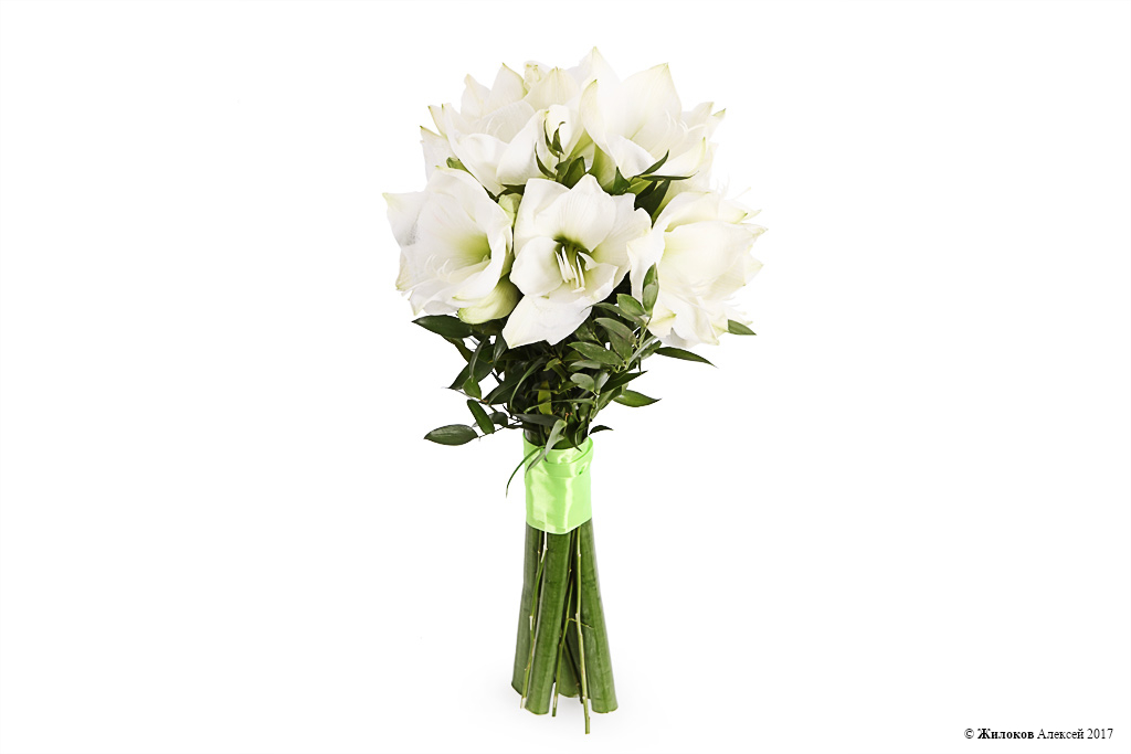 Состав: Гиппеаструм - 6Рускус Акулеатус - 1 Атласная лента - 1 |