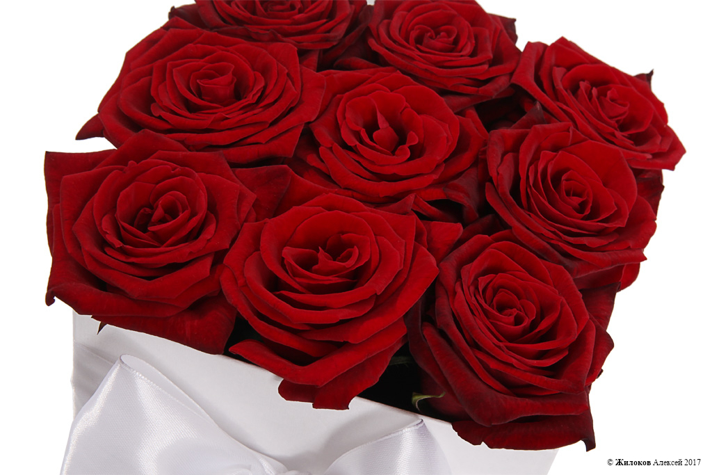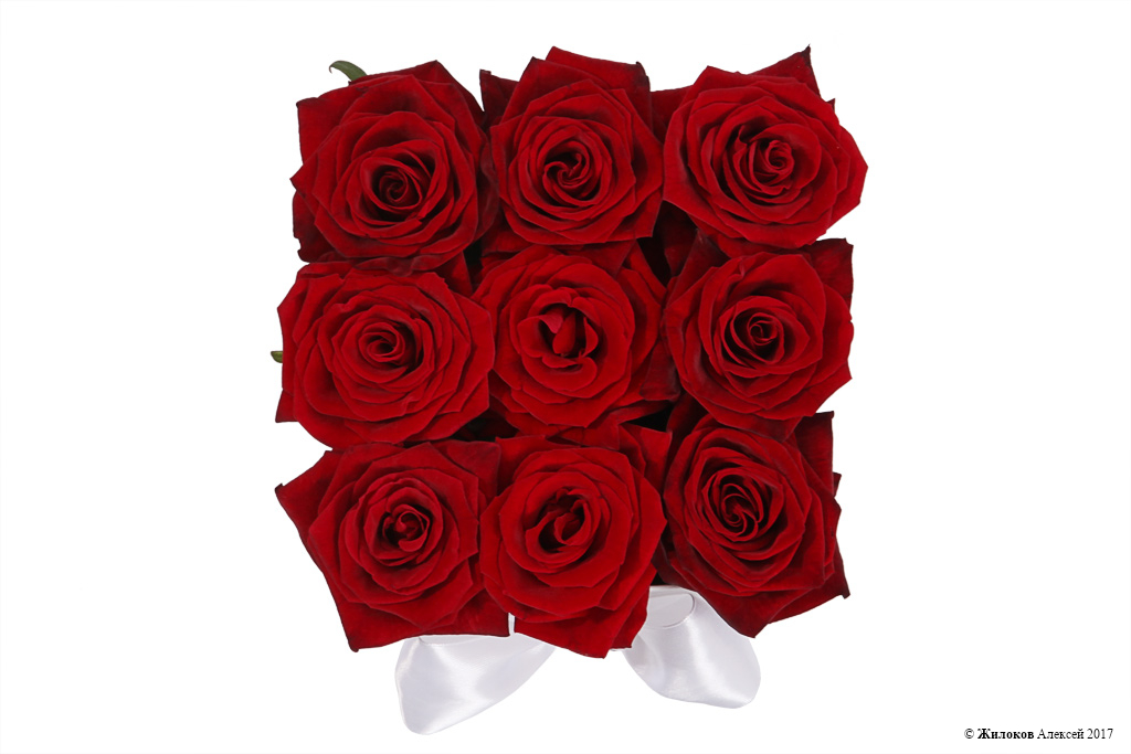 Состав: Роза Гран При - 9Коробка прямоугольная 15х15х20 (белая) - 1 |