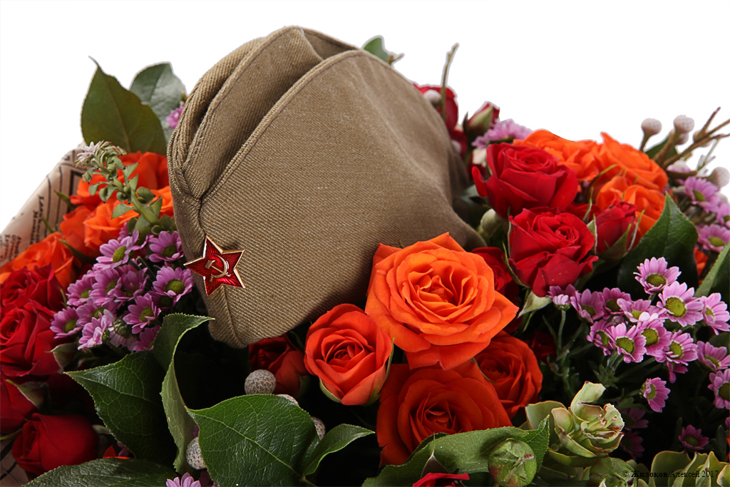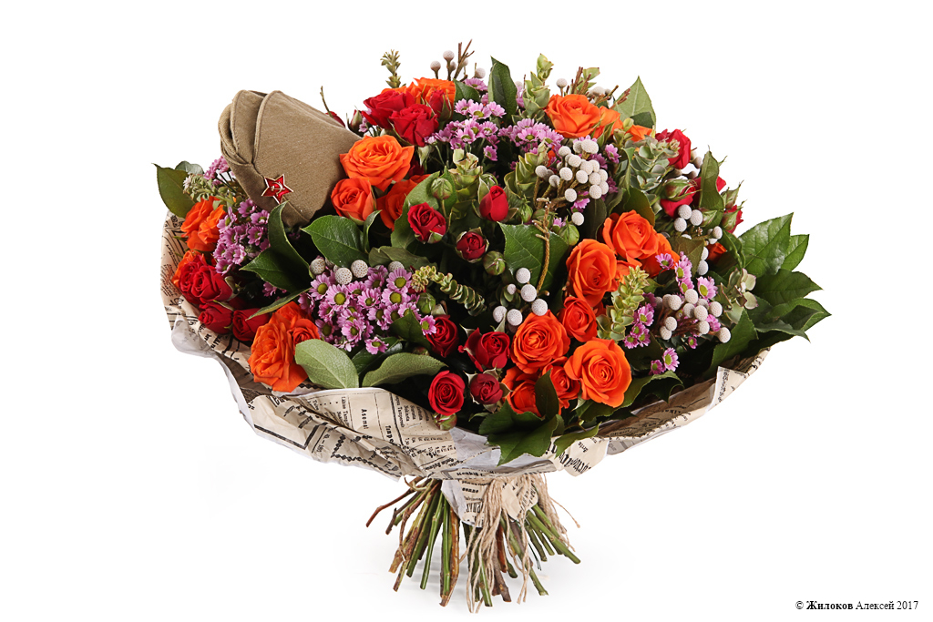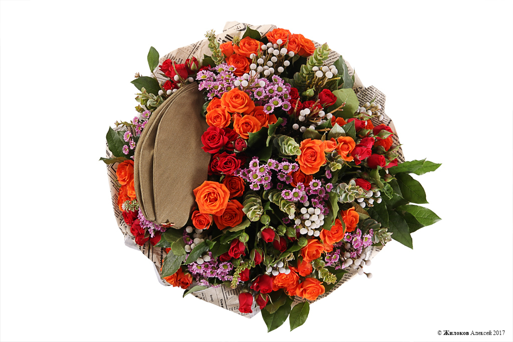 Богатый, роскошный и пышный букет для настоящего защитника Отечества. Легендарная солдатская пилотка с красной звездочкой органично вписывается в великолепную цветовую гамму и делает этот букет прекрасным подарком как на 23 февраля, так и на день Победы - 9 мая! Приятный сюрприз для любимого мужчины, руководителя или делового партнера.