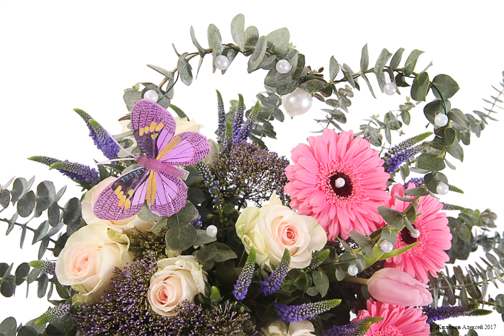 Волшебный и нежный подарок для единственной и неповторимой девушки. Такая эксклюзивная цветочная композиция, выполненная в пастельной бело-розовой гамме, передаст весь спектр испытываемых Вами чувств. Трепетное послание о любви, которое покорит сердце любой красавицы!