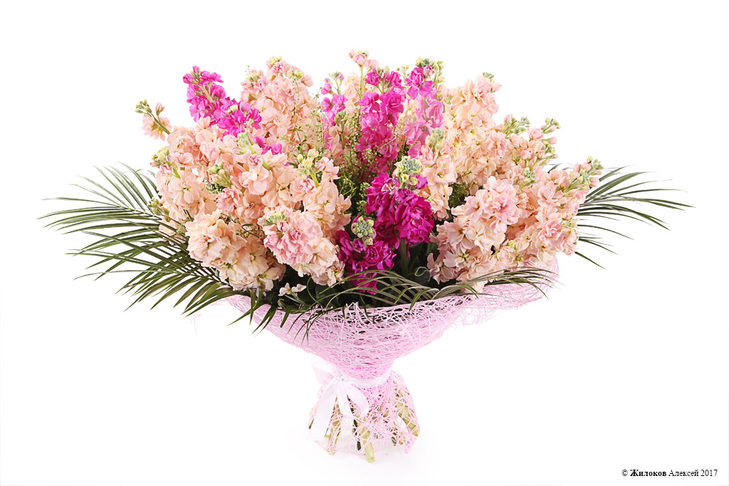 Описание: Роскошный и пышный букет из розовой маттиолы станет чудесным презентом, который заставит сердце биться быстрее и наполнит его любовью и нежностью. Пушистые цветки на высоких стеблях очаровывают с первого взгляда! |