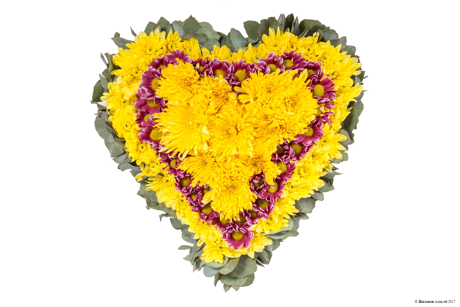 Сердце в подарок – не об этом ли мечтает каждая девушка на День Святого Валентина? Прекрасное, сияющее солнечным светом сердце из желтых хризантем выглядит великолепно и будет радовать своей красотой очень долго.