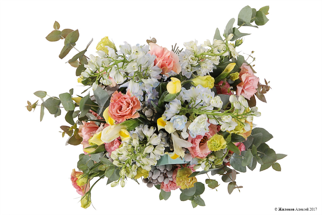 Состав: Ирис - 1Эустома - 1 Дельфиниум - 5 Эвкалипт - 1 Сильвер бруния - 1 Кашпо "Скворечник" - 1 |