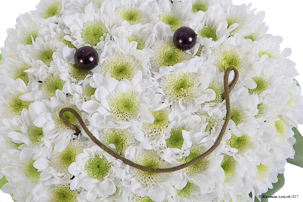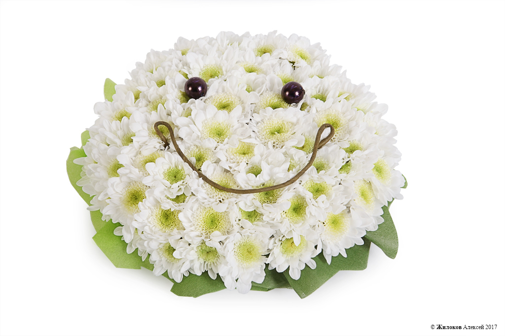 Чудесная игрушка из белой хризантемы, которая непременно вызовет улыбку и добавит позитива в любой, даже самый пасмурный день. Удивите и порадуйте таким ярким подарком Ваших близких и любимых!