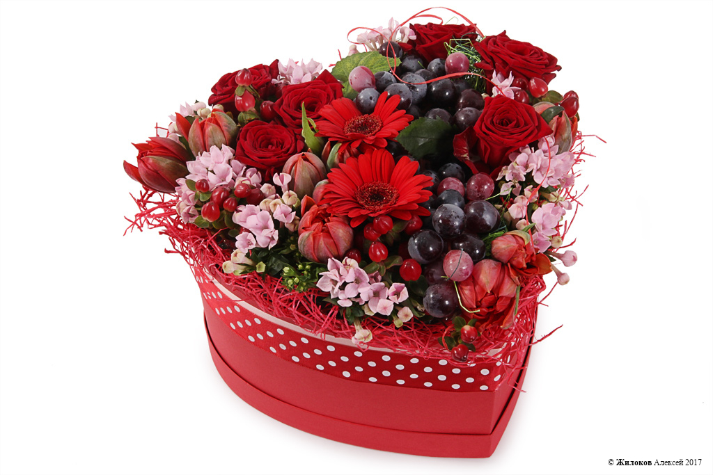 Состав: Роза Дип Перпл - 61Коробка "Сердце" 30х25х16 (красное) - 1 |