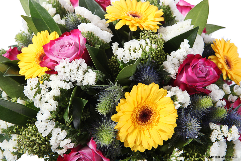 Описание: Стильная и необычная цветочная композиция, которая станет прекрасным подарком по поводу и без. Яркий букет из гербер, роз, статицы и зелени передаст Ваше душевное тепло и прекрасное настроение на любое расстояние. Такая композиция - это настоящий гимн весне, ласковому солнцу и голубому небу! А оригинальное металлическое кашпо позволит живо вписать ее в любой интерьер, преобразив и украсив его. |