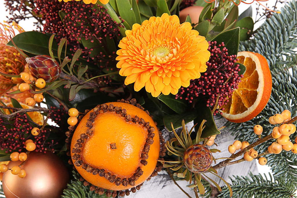 Оригинальная, яркая и красочная композиция, которая легко поднимет настроение даже в самый холодный и хмурый день. Бесподобные ароматы веточек нобилиса, корицы и апельсина создадут атмосферу новогоднего праздника и настоящего домашнего уюта. Запоминающийся подарок к зимним праздникам!
