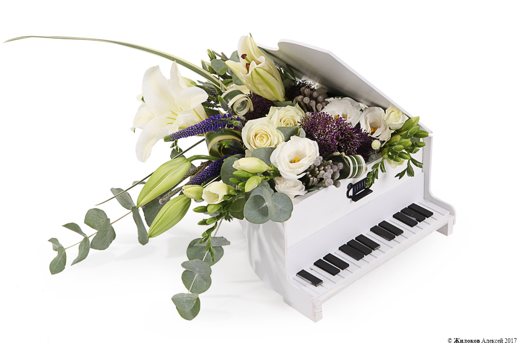 Описание: Оригинальная цветочная композиция в чудесном исполнении. Идеальная подборка цветов создает целостную картину: удивительную, интересную и притягивающую взгляд! Их невероятную нежность подчеркивает необычное деревянное кашпо в форме рояля! Такой подарок произведет впечатление на кого угодно! |