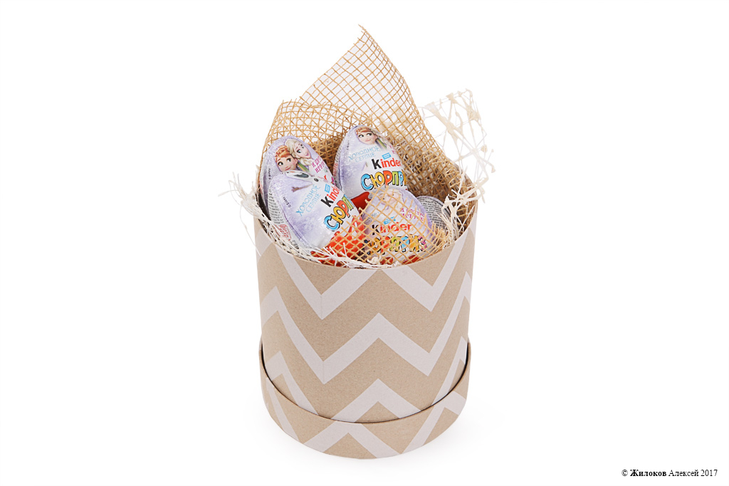 Состав: Шоколадное яйцо «Киндер сюрприз» - 10Коробка круглая 14х15 (мини) – 1 |