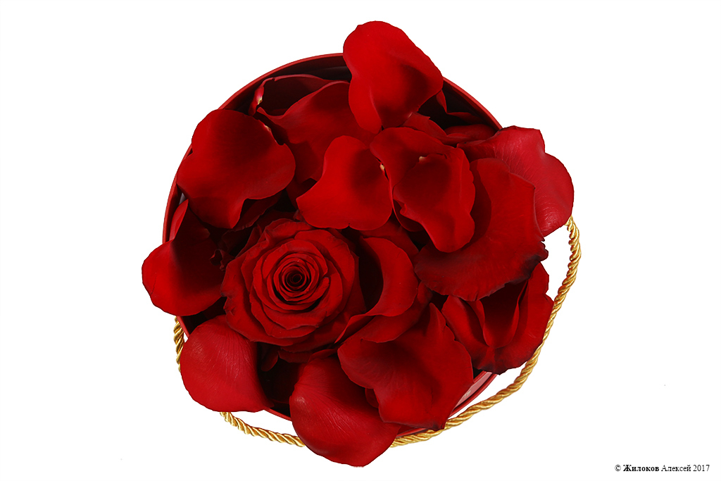 Состав: Лепестки роз - 1Коробка круглая 18х19 (красная) - 1 |
