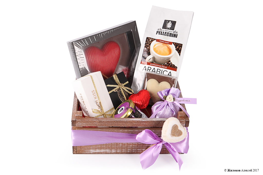 Состав: Шоколад молочный CHOCBAR XL DE LUXE «Сердце и роза» - 1Набор конфет "Щелкунчик" - 1 Набор конфет «Трюфельное очарование» - 1 Кофе зерновой Pellegrini (500 г) - 1 Мед-суфле «Черника» - 1 Шоколад молочный «Сердце» белое - 1 Драже «Клубника в шоколаде» - 1 Украшение на палочке - 2 Кашпо "Ящик 3 рейки" - 1 |