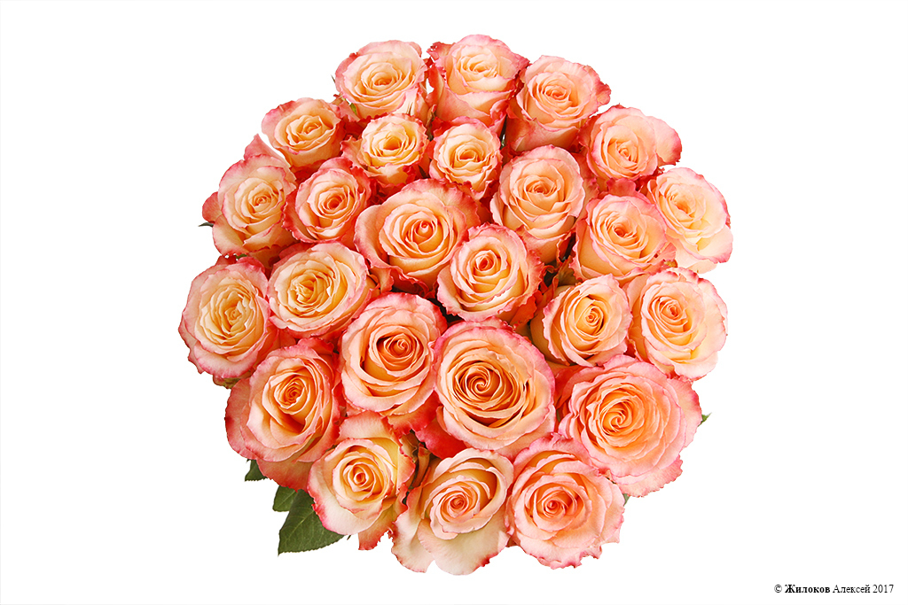 Изысканные и утонченные бутоны эквадорской розы Дуэт Классик в розовато-персиковых цветах, с более темным, контрастным краем лепестков подарят нежность и тепло адресату. Они способны передать за Вас самые трепетные, возвышенные и искренние чувства.