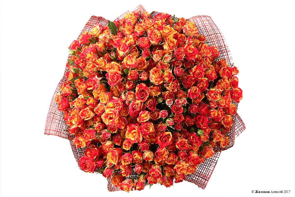 Настоящий фейерверк красоты, взрыв ярких красок - все это о букете из 50 кустовых роз Фаер Флеш. Этот красочный придется как нельзя кстати ярким и зажигательным натурам!