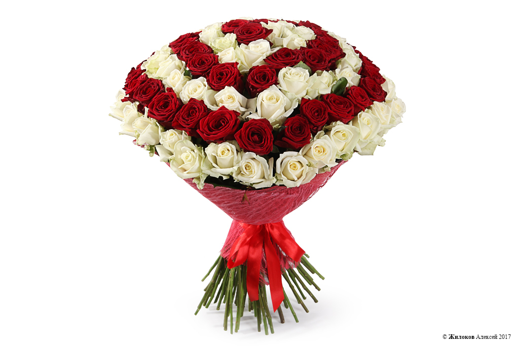 Красные и белые розы чудесным образом переплетаются в завораживающую взгляд спираль - символ жизни, беспрерывного движения, нового начала. Такая цветочная композиция станет идеальным подарком для энергичных и целеустремленных натур ,а также если Вы хотите пожелать успехов в каких-либо начинаниях, отметить новый этап в жизни близкого Вам человека!