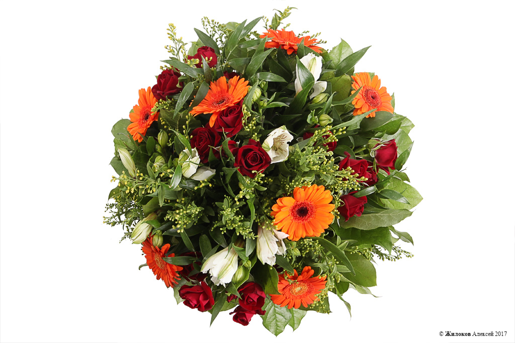 Яркий, гармоничный и выразительный, дарящий незабываемое тепло и радость, букет. Прекрасное сочетание роз и гербер насыщенного оранжевого цвета с воздушными альстромериями и сочной зеленью делает любой день настоящим праздником, а праздничный день оставляет в памяти на долгое время.