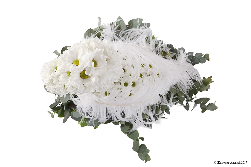 Состав: Хризантема кустовая - 20Эвкалипт - 1 Рускус - 10 Декор "Перо Премиум" - 2 Корзина малая - 1 |