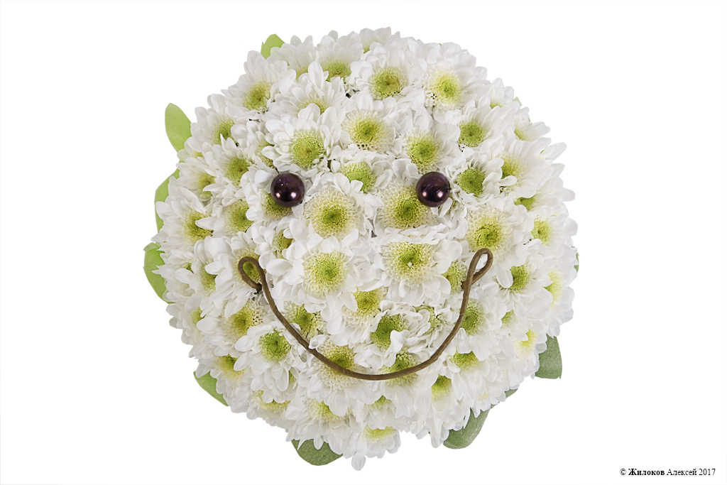 Чудесная игрушка из белой хризантемы, которая непременно вызовет улыбку и добавит позитива в любой, даже самый пасмурный день. Удивите и порадуйте таким ярким подарком Ваших близких и любимых!