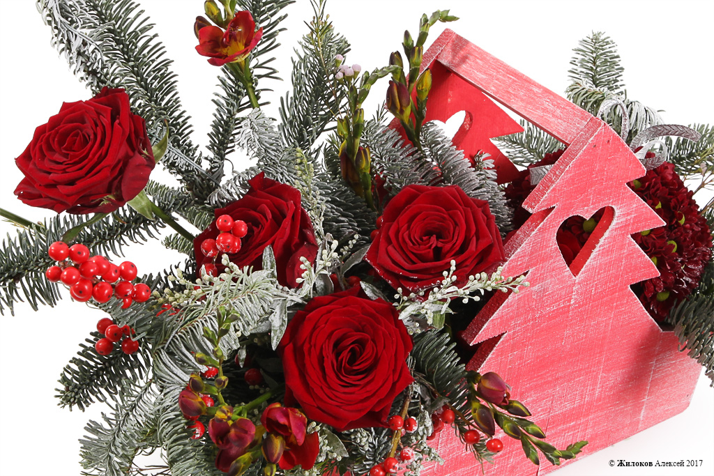 Описание: Необычная цветочная композиция, оформленная в традиционной рождественской цветовой гамме. Этот оригинальный подарок станет ярким и уместным украшением любого интерьера к Новому году и Рождеству. |