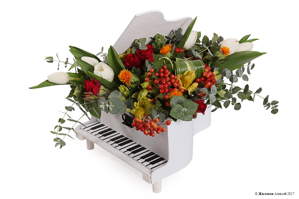 Описание: Подарите дорогому человеку этот чудесный подарок: это прекрасные цветы в кашпо-рояле. Чудесный презент для тех, кто любит музыку или посвящает ей жизнь! А может быть, он поможет услышать музыку души дарителя? В любом случае, эта композиция выглядит оригинально и обворожительно! |
