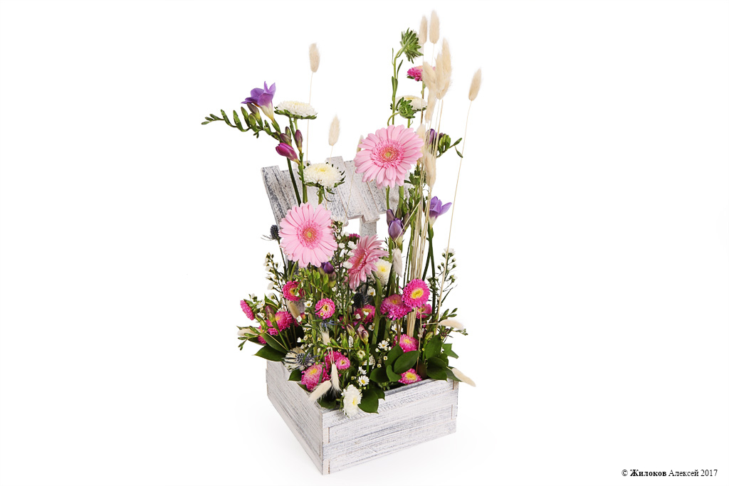 Оригинальная цветочная композиция в деревянном кашпо, выполненная в нежной бело-розовой гамме, станет трепетным посланием о любви и трогательных чувствах. Этот волшебный подарок покорит сердце любой красавицы и еще долго будет напоминать ей о Вас!